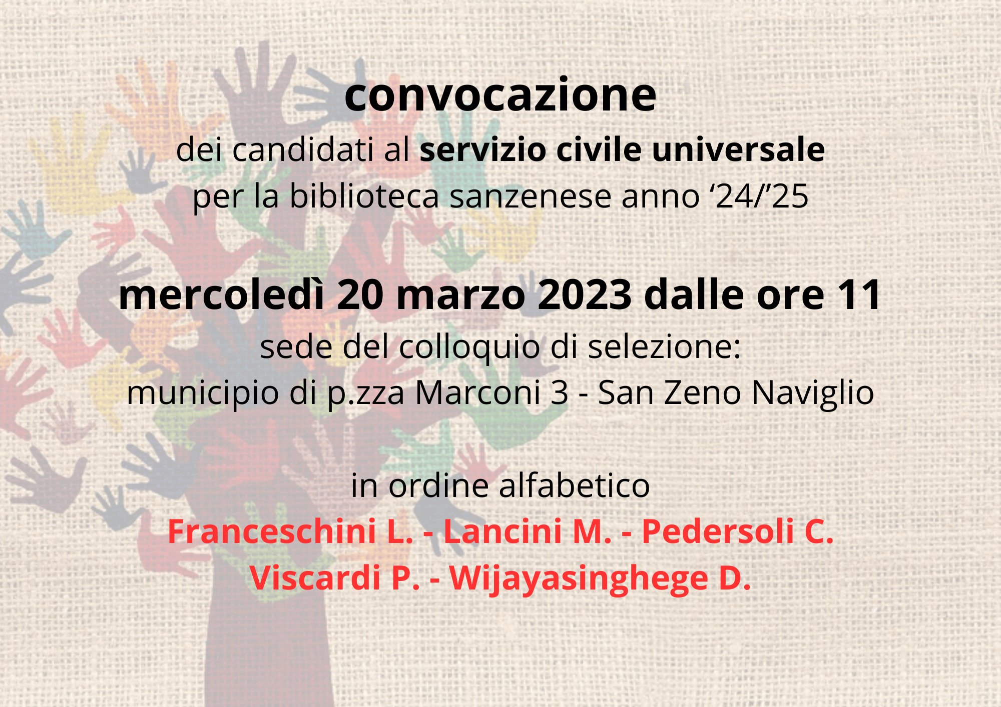 Convocazione candidati SCU servizio civile universale